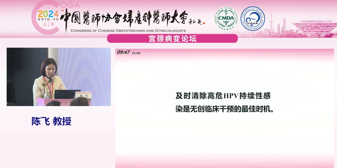 北京協(xié)和醫(yī)院陳飛教授就《清除高危HPV無(wú)創(chuàng)臨床干預(yù)》為題進(jìn)行報(bào)告: