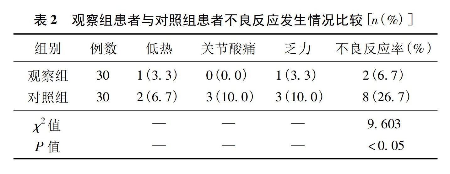 根據(jù)入院先后順序?qū)颊邔?shí)施分組,觀察組與對(duì)照組各30例。