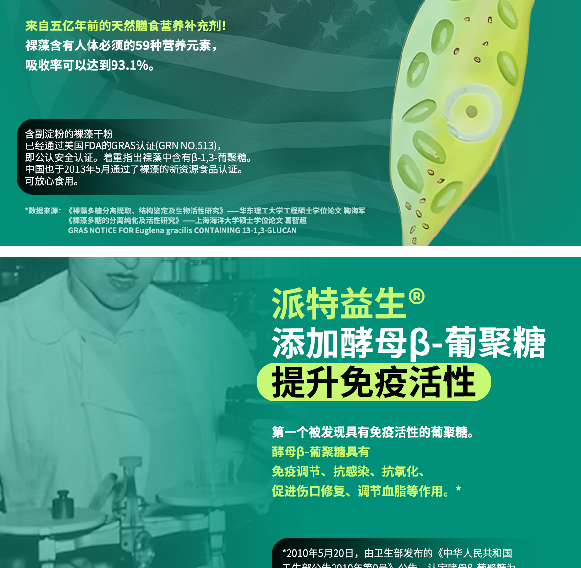 - 添加美國(guó)FDA、GRAS認(rèn)證的酵母β-葡聚糖 | 添加美國(guó)進(jìn)口裸藻粉