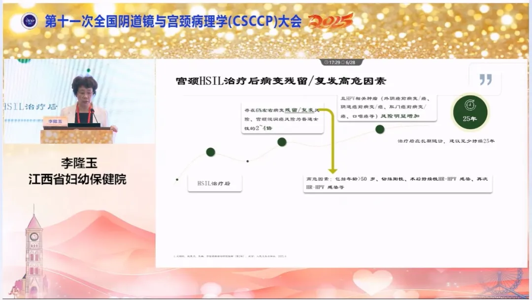 2. 宮頸HSIL治療后病變殘留/復(fù)發(fā)高危因素:存在6%左右病變殘留/復(fù)發(fā)風(fēng)險,宮頸浸潤癌風(fēng)險約為普通女性的2~4倍;